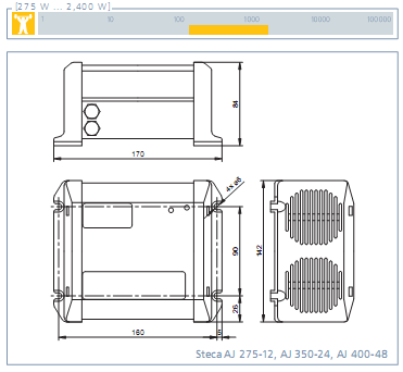 Steca AJ Series Inverter data sheet The Steca AJ inverter series stands out with wide range of available power classes and DC input voltages. This enables the optical inverter to be used for any application. The cables for connecting the battery and load are already mounted on the Steca AJ, thus making it easier to install the device. The automatic standby mode considerably reduces the inverter own consumption. The Steca AJ inverter excellent overload capacity ensures that even critical loads can be operated easily.